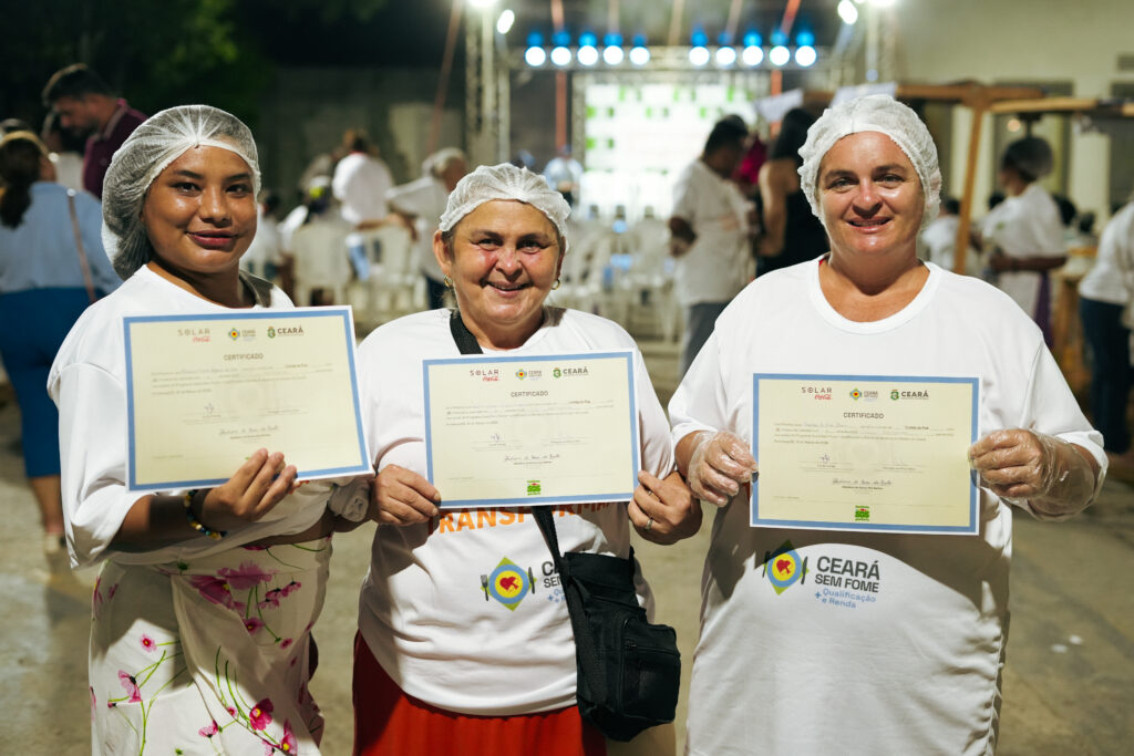 A solenidade reuniu participantes dos municípios de Guaiúba, Pacatuba e Itaitinga, com a formação de 15 turmas. As capacitações foram realizadas por meio de parceria entre o Ceará Sem Fome, o Instituto SOS Periferia e a Solar Coca-Cola, empresa pactuante do programa.